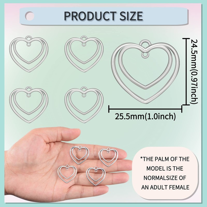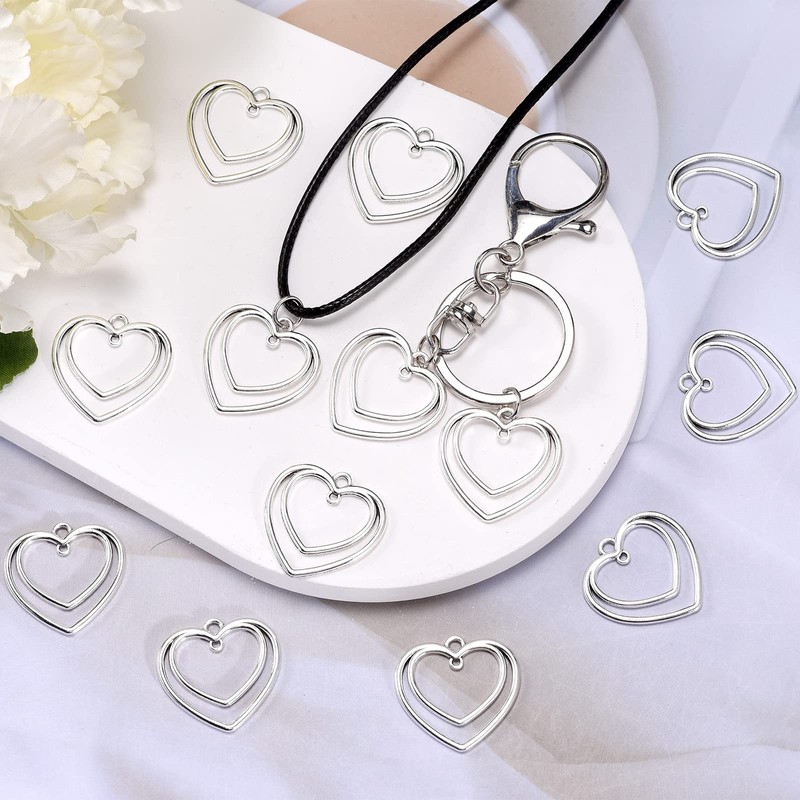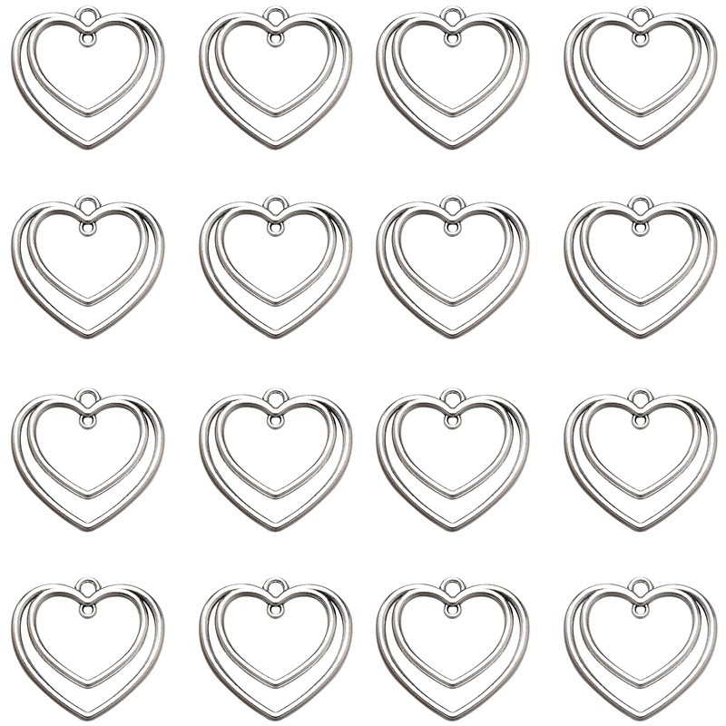 50Pcs Alloy Double Heart Charm Open Back Bezel Pendants Pressed Flower Blank Frame Pendants Connector Charms For DIY Resin Jewelry Making Earring Necklace Bracelet