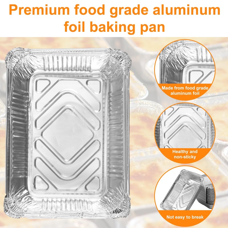 - Food Grade Aluminum Foil Material and Non-Stick and Heat Resistant: The aluminum foil baking pans are made of food grade aluminum foil, non-stick, healthy, grease and water resistant. After upgraded and thickened processing, it is not easy to break, has good heat resistance (up to 428 degrees Fahrenheit), can be directly heated by open fire, can be used for air fryer, oven, gas stove, charcoal, refrigerator, steamer and so on, it can retain the original flavor of the food itself