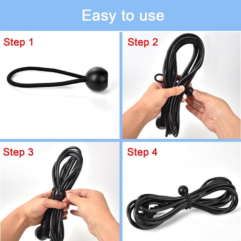 - Widely Applied: There black bungee balls are suitable for indoor and outdoor scenes, for tarpaulins, camping tarps, tents, shade cloths, curtains, canopy and fixings, etc. Small bungee cords with balls are used in all aspects of life.