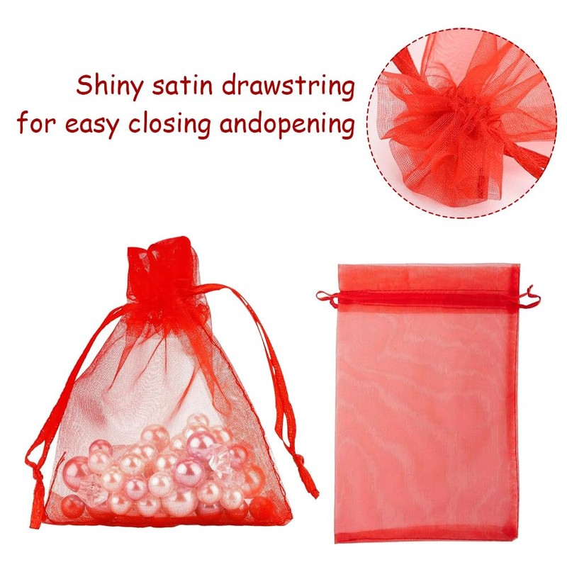 50pcs Clear Organza Bags 17x23cm Medium Organza Gift Bags Drawstring Jewelry Gift Bags Wedding Gift Bags for Party Festival Game Red