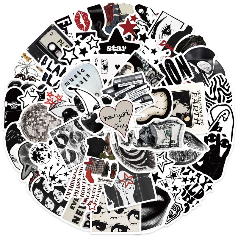 50PCS Darkness Y2K Stickers, Trendy Black & White Y2K Sticker Set for Girls T...