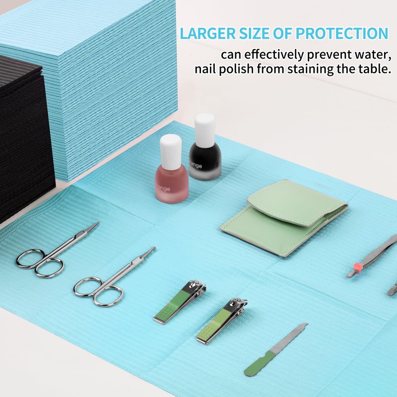 - 【 Triple-Layer Leakproof Design 】Engineered with 2 wood pulp layers + 1 PE film, our disposable nail mats create dual protection. The absorbent front captures polish/dust(nail accessories), while the waterproof back safeguards nail tables from stains. Ideal for portable nail desks and professionalsalon, tested 500+ times for leakproof performance.