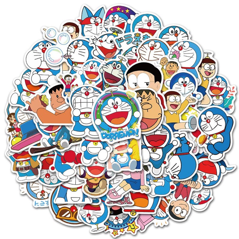 50PCS Doraemon Stickers Anime Stickers for Laptop Water Bottle Computer Skateboard Luggage