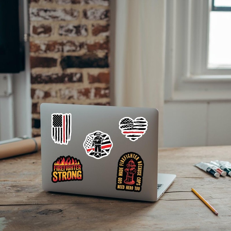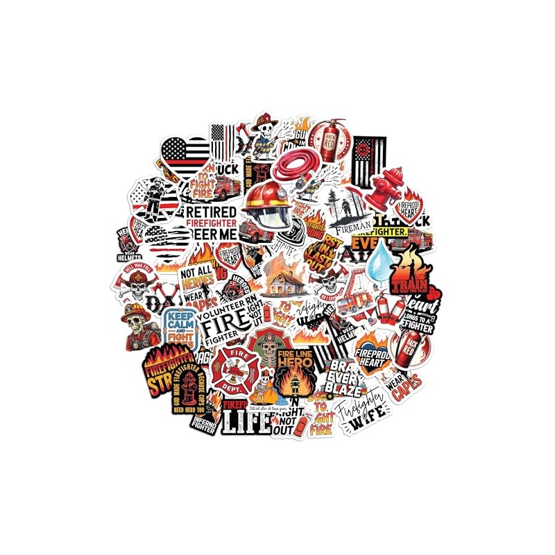 50Pcs Firefighter Hero Stickers - Bold and Brave Firefighting Designs - Perfect for Firefighters and Supporters - Durable - Waterproof Decals for Helmets and Gear and Vehicles