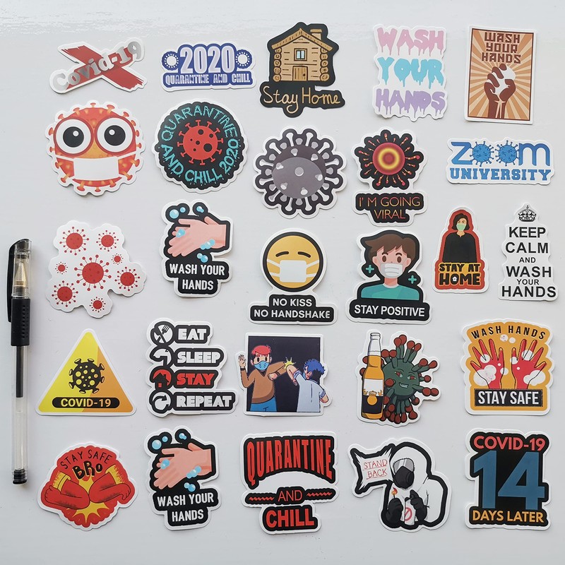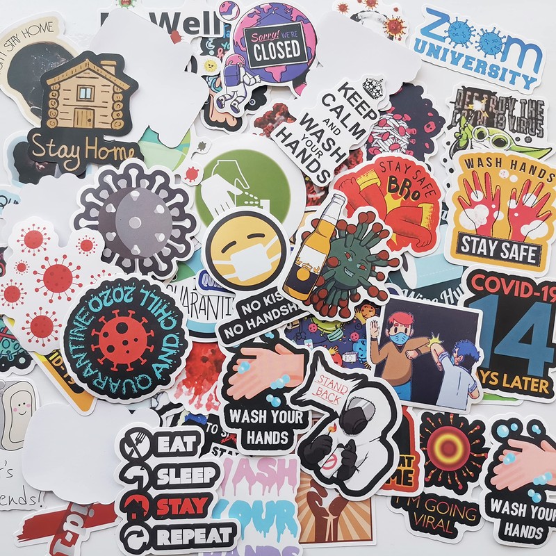 50Pcs Funny Hardhat Decals Stay Home Hilarious Virus Stickers for Laptops Notebook Water Bottles