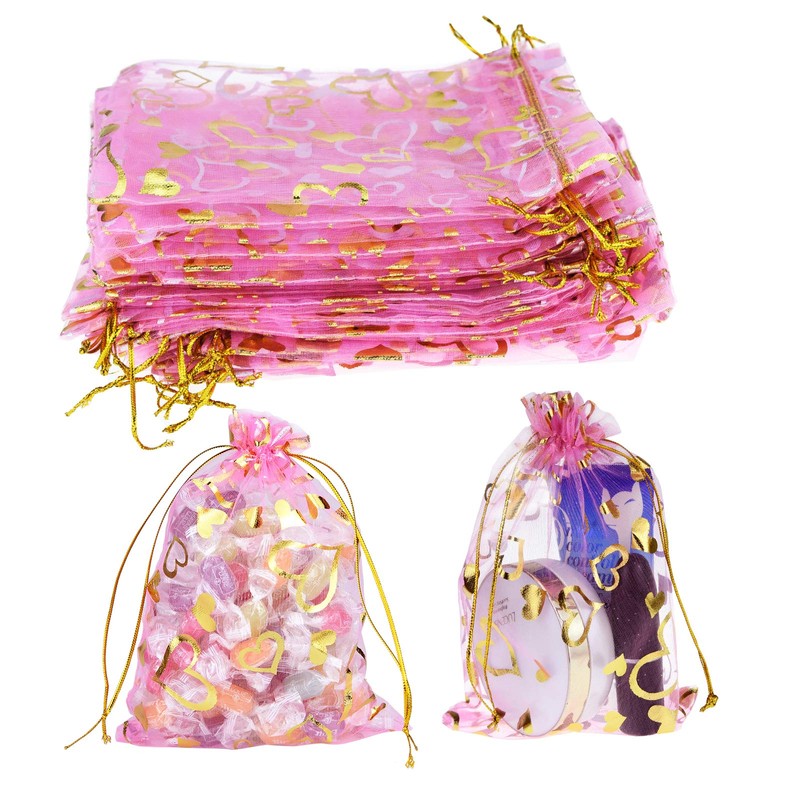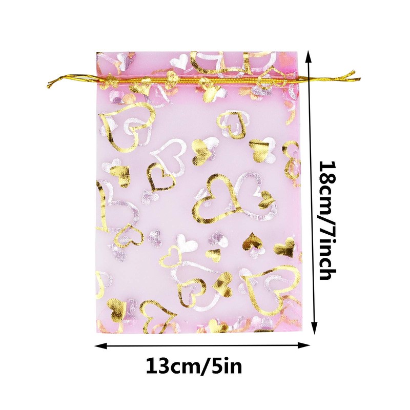 - PACKAGE INCLUDED:you will get 50pcs pink heart printed organza bags.(SIZE:18cm/7Inches in length,13cm/5Inches in width)very suitable for pack small gifts.