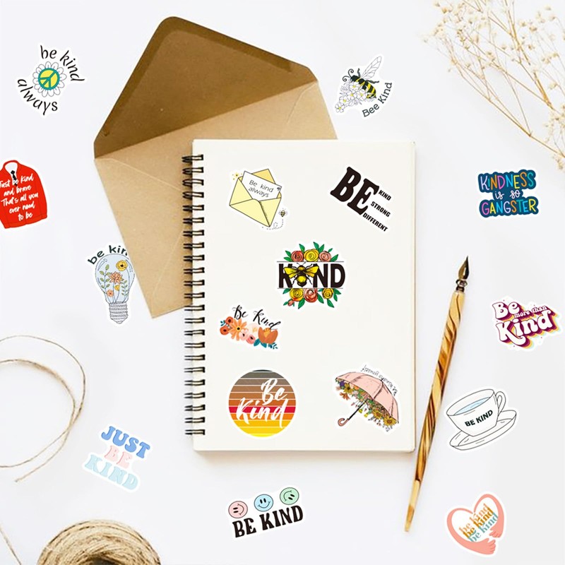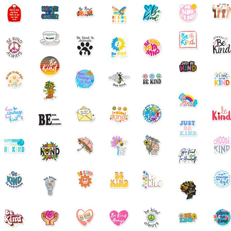 50pcs Kindness Stickers for Kids Teens Adults, Motivational Be Kind Stickers for Water Bottles, Kindness Waterproof Decals for Laptop Scrapbooking Journaling Notebook Party Supplies