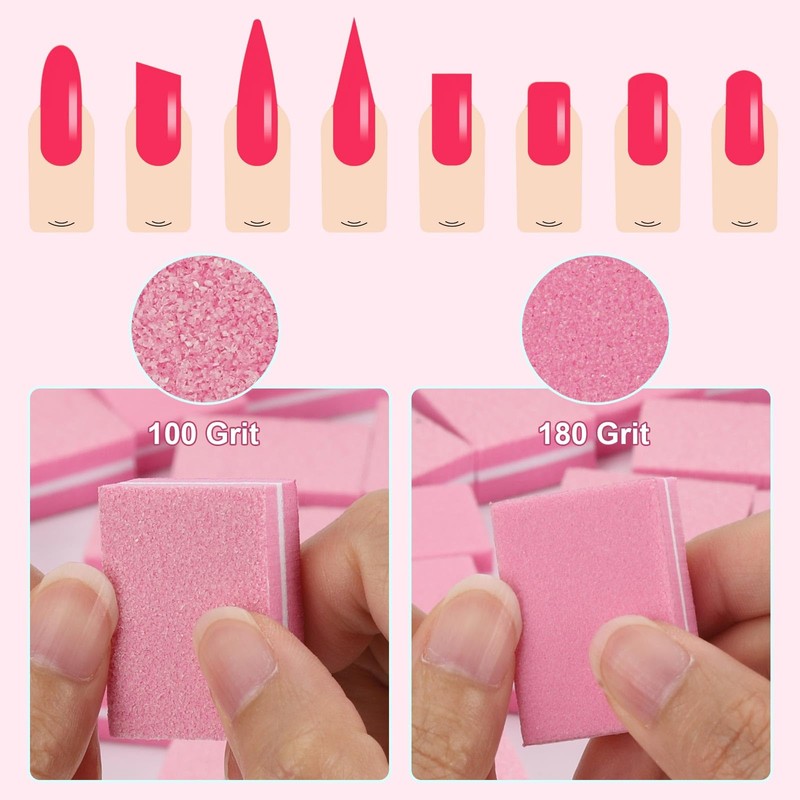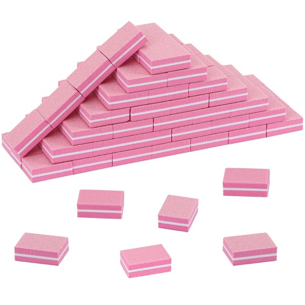50Pcs Mini Nail Buffer for Natural Nails -100/180 Grit Buffer Block Dual Sided Nail File Block for Smooth Polishing(Pink)