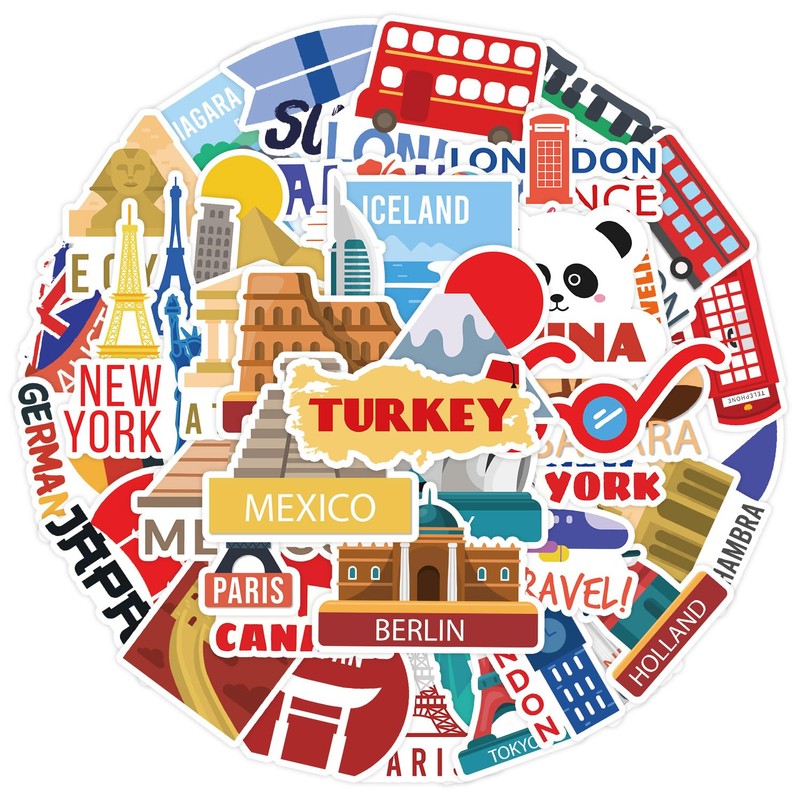 - VERSATILE DESIGN: These Tourism Stickers Packs are perfect for decorating water bottles, laptops, phones, computers, guitars, skateboards, and Hydroflasks. Elevate your belongings and express your personality wherever you go!