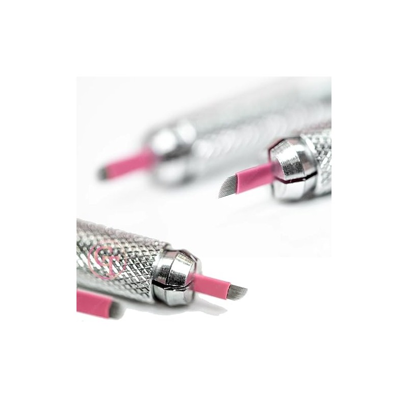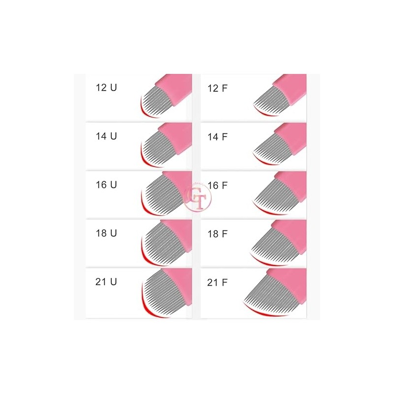 50pcs Pink Disposable Semi-Permanent Eyebrow Needles Blades 0.15mm Nano Needles for Tattoo Manual Pen Availalbe Sizes 12F, 14F, 16F, 18F, 21F, 12U, 14U, 16U, 18U, 21U (0.15mm 16U)
