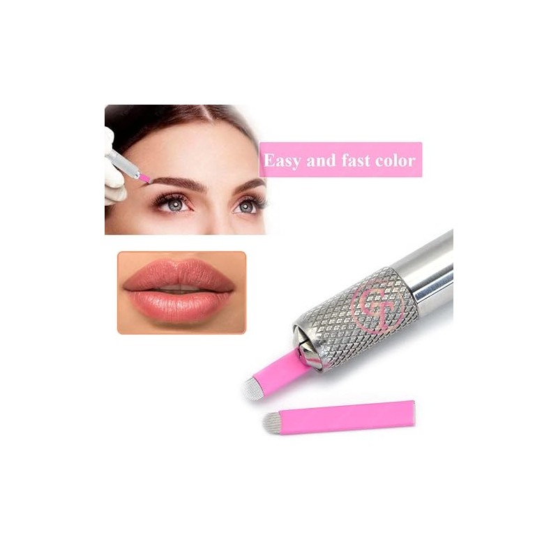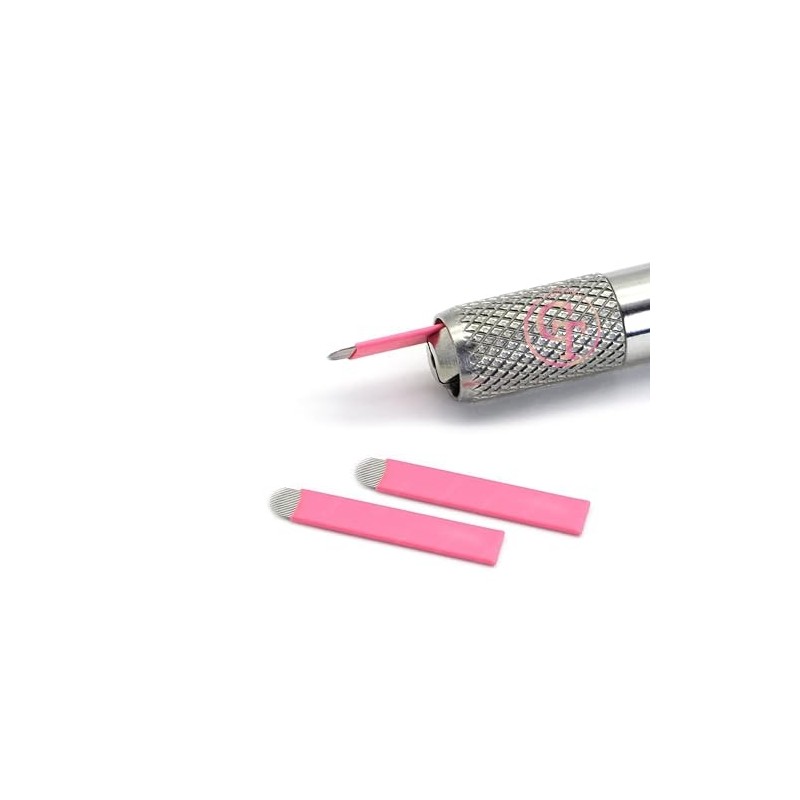 50pcs Pink Disposable Semi-Permanent Eyebrow Needles Blades 0.15mm Nano Needl...