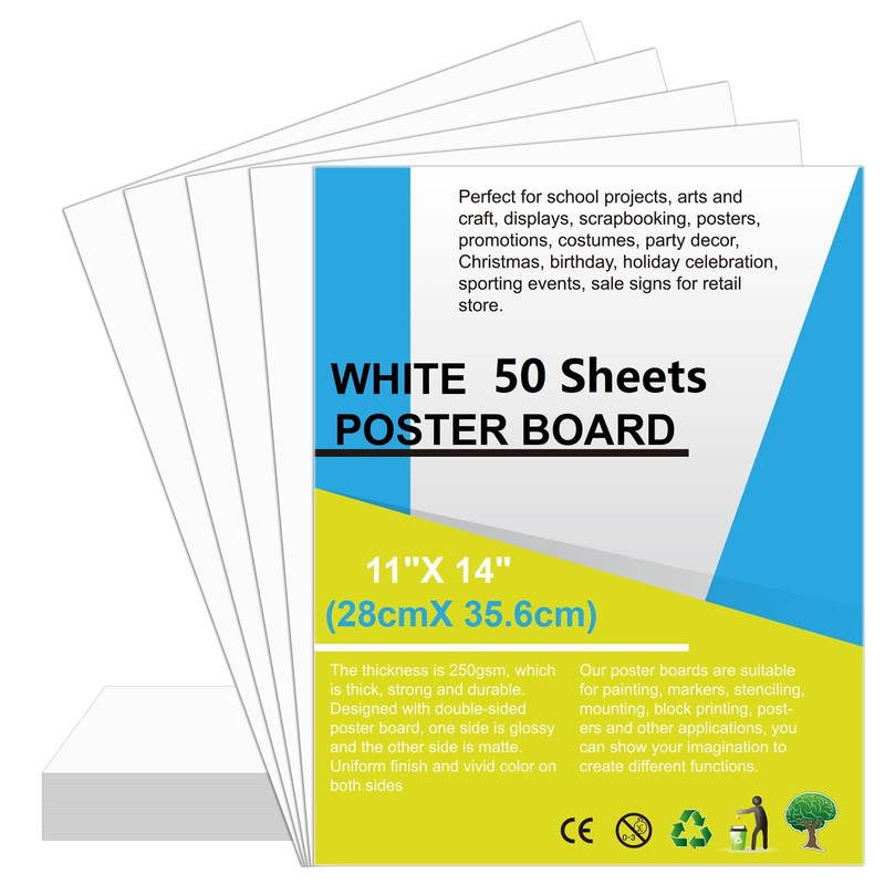 - Package Included: 50 sheets 11 x 14 inches white poster board paper bulk. Ideal for school projects, arts, and crafts, displays and signs, sales, promotions, scrapbooking, sports events and office use