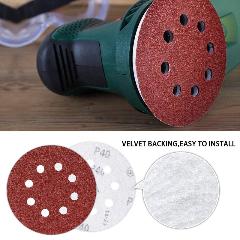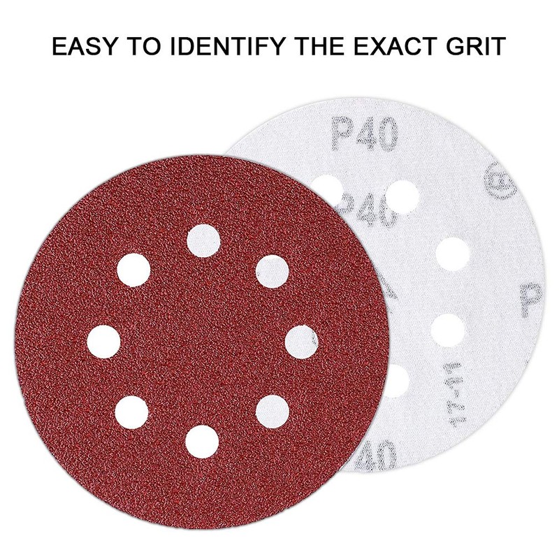 50PCS Sanding Discs Pads 40 Grits 5 Inch Hook and Loop 8-Holes Sandpaper Assorted for Random Orbital Sander