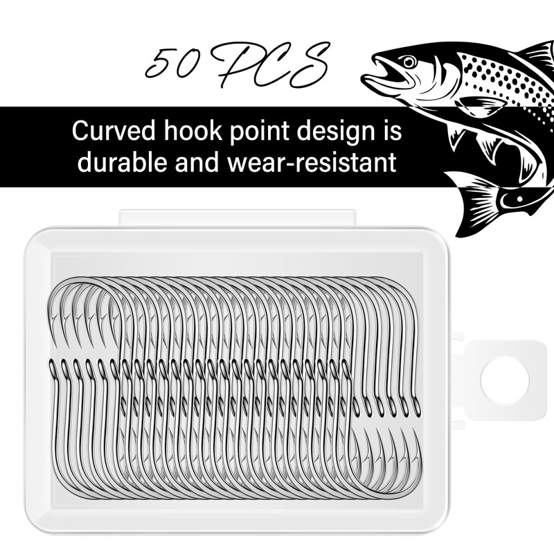 50PCS Sharp Barbed Fishing Hooks, High-Carbon Steel Ultra-Strong, Single Size with Hole for Easy Tying, Secure Portable Box Included – Ideal for Bank Fishing, Lure Fishing & All Conditions (4#)