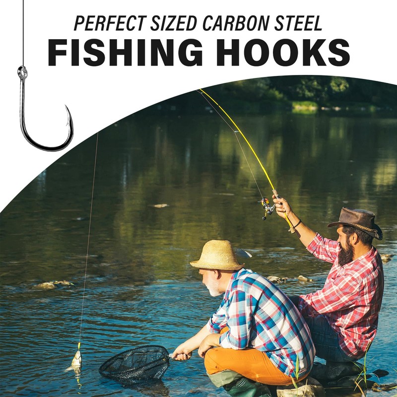 50PCS Sharp Barbed Fishing Hooks, High-Carbon Steel Ultra-Strong, Single Size with Hole for Easy Tying, Secure Portable Box Included – Ideal for Bank Fishing, Lure Fishing & All Conditions (4#)