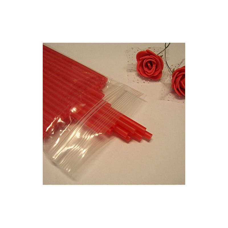 50pcs X 6" Red Plastic Lollipop Sticks +50 Bags + 50 Twist Ties (Polka Dot Red)