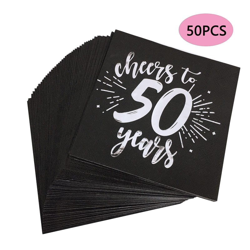 50Pieces Silver50th Birthday Celebration Party Decorative NapkinBlack50th Birthday Decorative Men's and Women's Party Supplies Cocktail Napkins in a black, Cheers to 50 Years