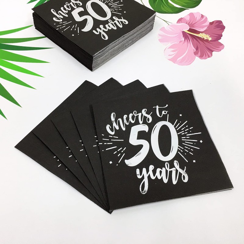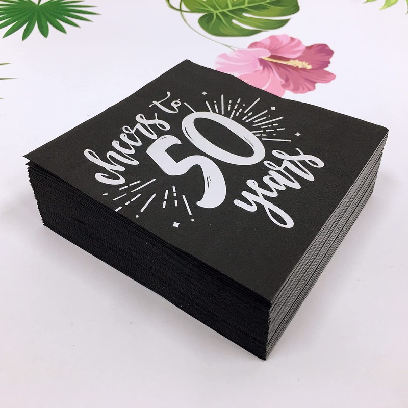 - 〖Perfect Design〗: The black napkin is printed with the silver word "Cheers to 50 Years", which is elegant and delicate, leaving a deep impression on your guests and making them happy