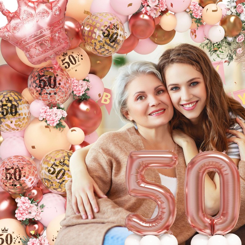 50th Birthday Balloons Garland Arch Kit,50th Party Decorations Rose Gold Pink for Women,with Number 50 Foil balloons,Happy Birthday Banner for 50 Years Old