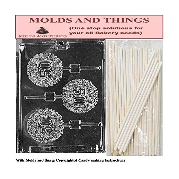 50th Lolly Chocolate Candy Mold Molding Instruction+ 25 Lollipop sticks