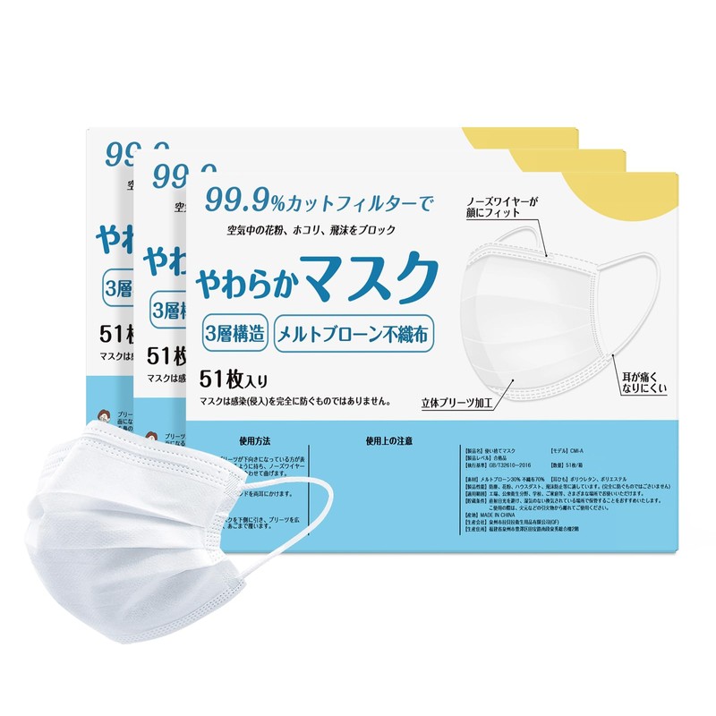 - 【製品特徴】もう耳が痛くならない、極柔らかゴム紐。3層フィルターで構成。優れた通気性を確保します。
