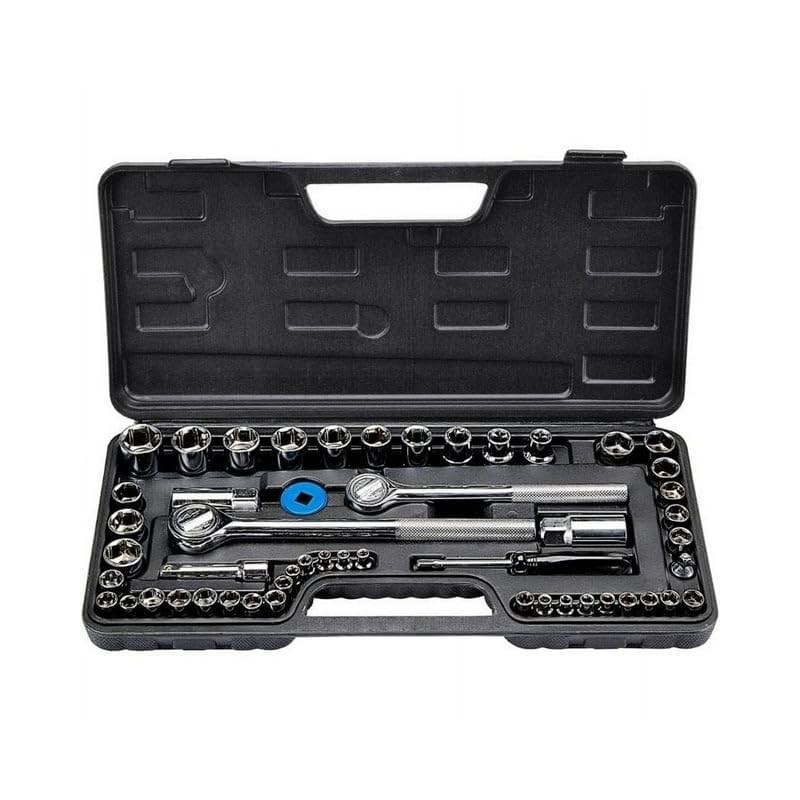 This 51 piece socket set is packed with sockets to accommodate almost any job! Offering a wide range of sizes, this set includes sockets to help you with automotive work, plumbing and more! Features a polished chrome finish along with 3/8 in. and 1/2 in. drive reversible ratchets to put the socket set to work all stored in a custom carrying case to keep the sockets organized! SAE and metric sockets in a wide range of sizes 6 point sockets 3/8 in. and 1/2 in. drive reversible ratchets 1/4 in. drive nut driver handle Polished chrome finish