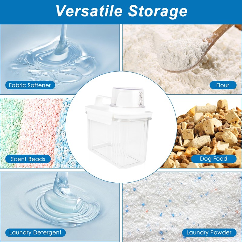 - Multifunctional: The Laundry detergent powder dispenser can accommodate not only laundry detergent,powder, scent beads,fabric softener,but also grains or flour, sugar. Besides ,5 waterproof labels are included to classify the detergent to keep the laundry room organized and tidy.