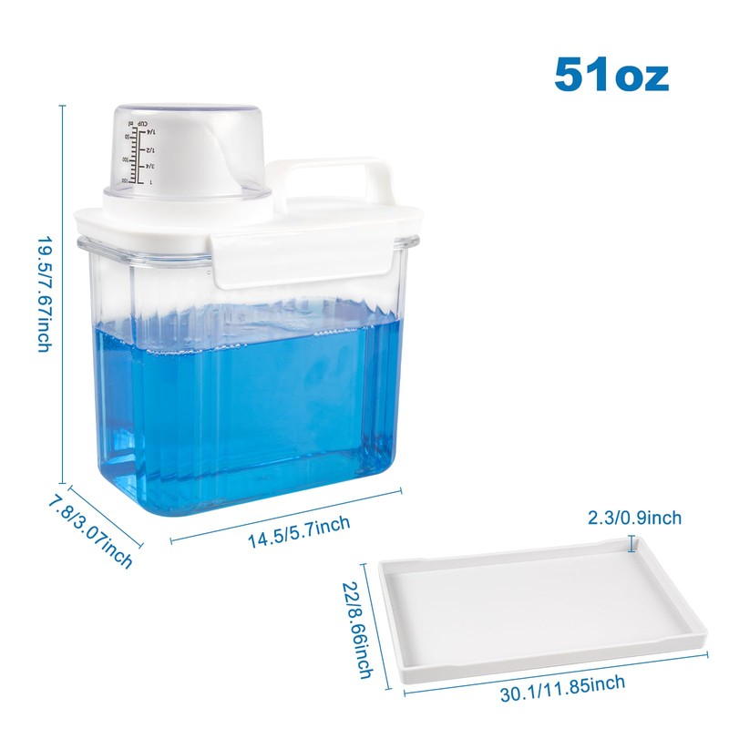- LARGE CAPACITY & PRECISE DISPENSER: Laundry detergent dispenser can contain 51oz liquid, avoiding constant refills; The measuring cup can precisely dispense the amount of liquid detergent