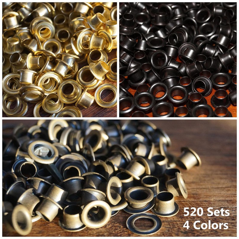 520 Sets Eyelet Punch Kit, 6mm 4 Colors Eyelet Grommet Kit, Brass Metal Eyelets with 3Pcs Setting Tools for Canvas, Tarpaulin, Leather, Tent, Awning, DIY Craft Fabric