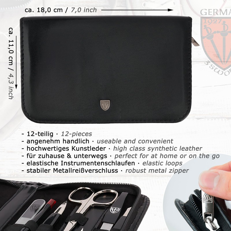 - Nail set 'Palermo' – This extensive nail care set is ideal for manicures, as well as for pedicure and foot care and comes in a high-quality, faux leather case. Ideal for home and travel use.