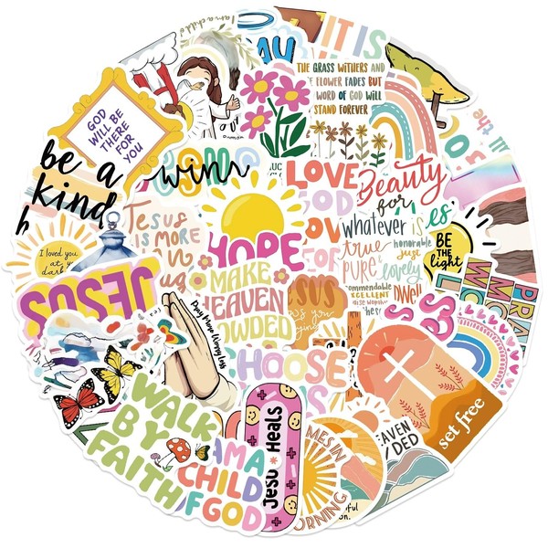 52PCS Jesus Bible Verse Stickers for Adults Kids Teens,Christian Verses Religious Aesthetic Waterproof Decals for Water Bottles Phone Cases Scrapbooks Laptops Notebooks Helmet Journaling Guitar