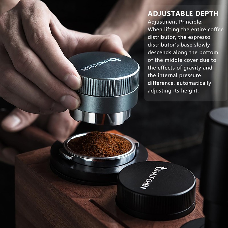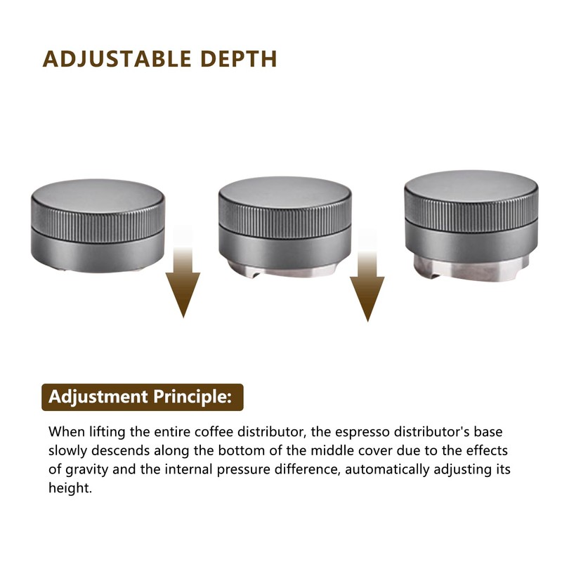 - Precision Design: Crafted with a sleek stainless steel body and ergonomic aluminum grip, this coffee distributor ensures even distribution of grounds for consistent extraction.