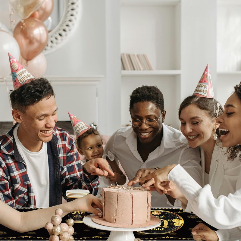 - 🔆Disposable Designs: Party Tableware Set with Black Gold Happy birthday design is most loved by boys of all ages! Our boy's,women's birthday or colorful lover,party sets have black birthday patterns, plates, mugs and decorations look great.Happy Birthday party extra special with these.