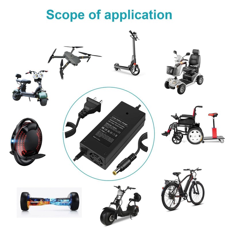 1. Suitable for 13S lithium-ion batteries, please use the charger in a dry place, unplug the charger after charging is complete.
