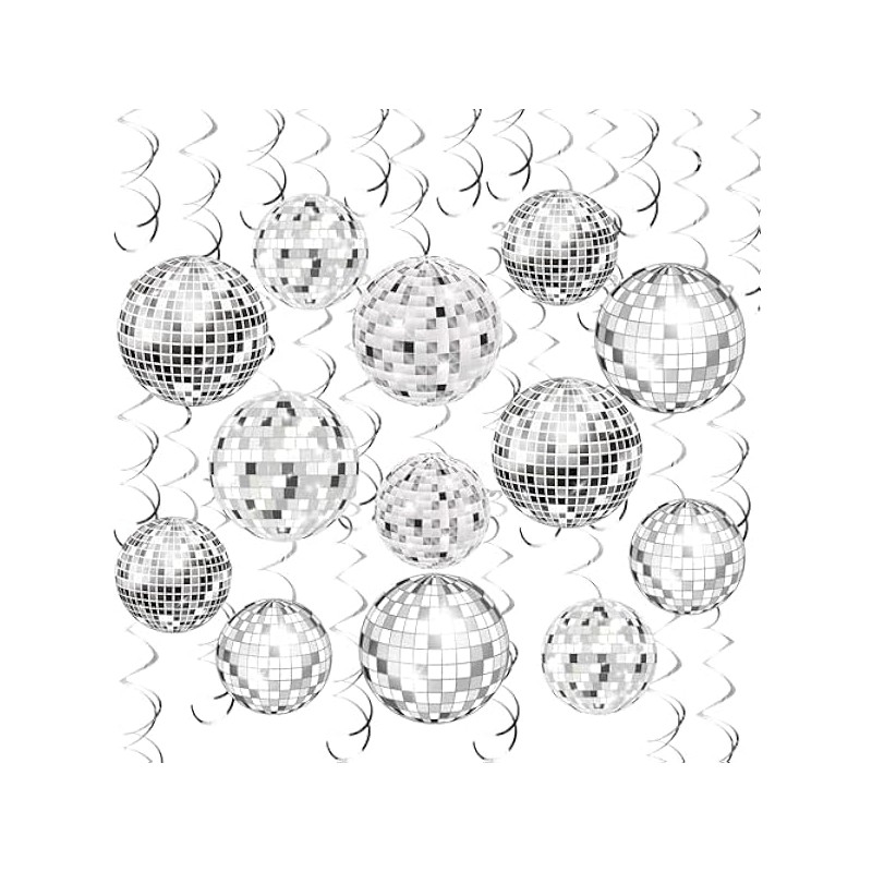 54 Pieces Disco Party Decorations Sliver Disco Ball Hanging Swirls 70s Ceiling Decor for 70s Fever Hippie Birthday Party Supplies