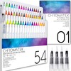 54 Watercolor Pens, 15 Page Pad & Online Video Tutorial Series by Chromatek. Real Brush Pens. 4 Blending Brushes. Easily Blendable. Vivid. Smooth. 50 Unique Colors. Professional Art Supplies