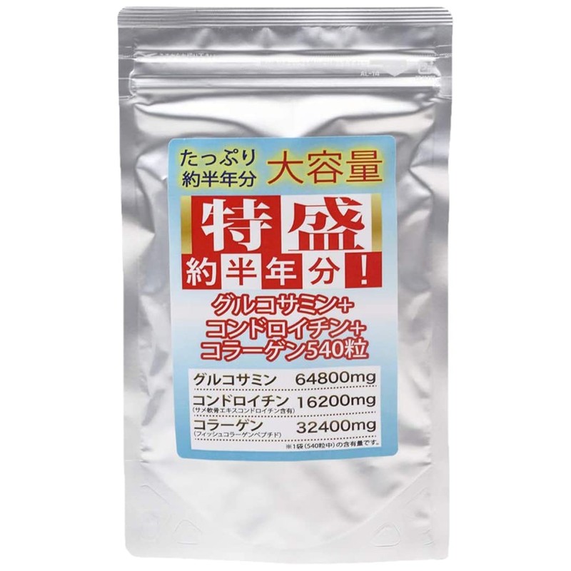 特盛約半年分グルコサミン+コンドロイチン+コラーゲン540粒 1袋約グルコサミン64800mgコンドロイチン純含有3240mg