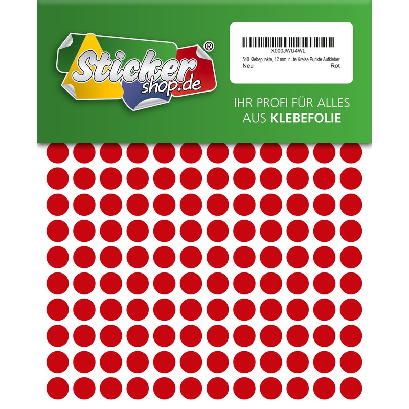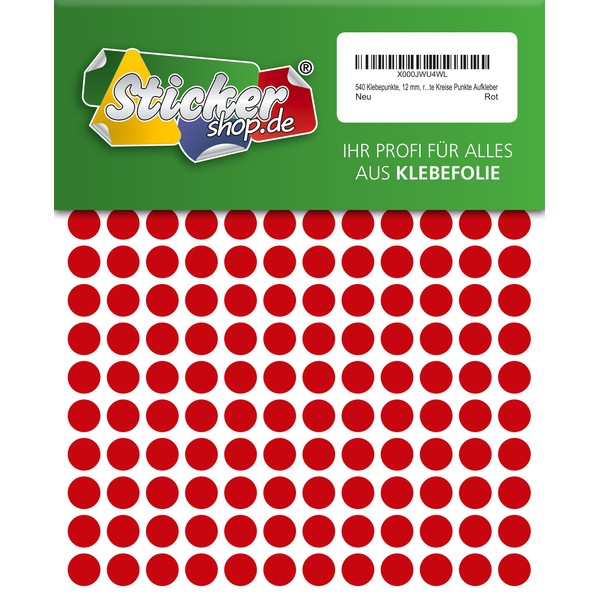 540 Glue Dots 12 mm Red PVC Film, Weatherproof, CODING DOTS CIRCLES DOTS Sticker