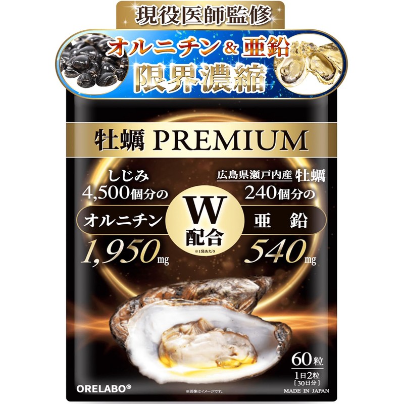 【医師監修】 牡蠣 サプリ 亜鉛 540mg オルニチン 1950mg イミダゾールペプチド バイオペリン 国産 検査済 広島産 牡蠣PREMIUM 60粒 30日分