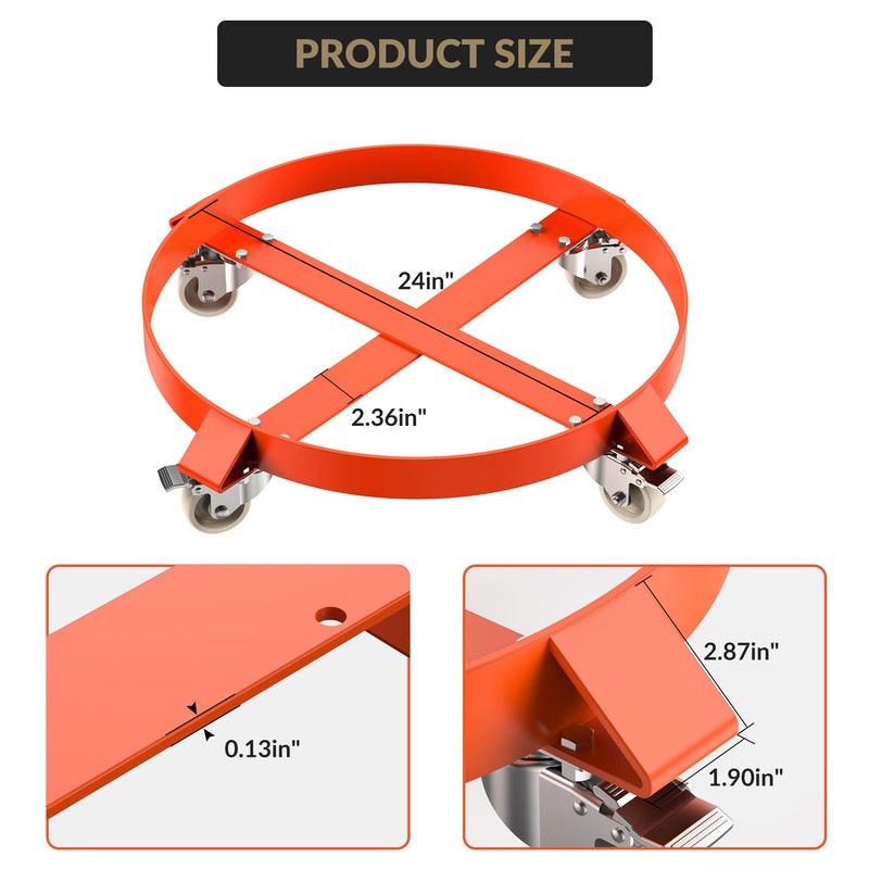 - [Stable Support] The 55-Gallon Drum Cart Features Heavy-Duty Powder-Coated Steel Construction With Cross-Bracing At The Bottom And Sturdy Welds On The Wheels, Ensuring Stable Support Even Under Heavy Loads.