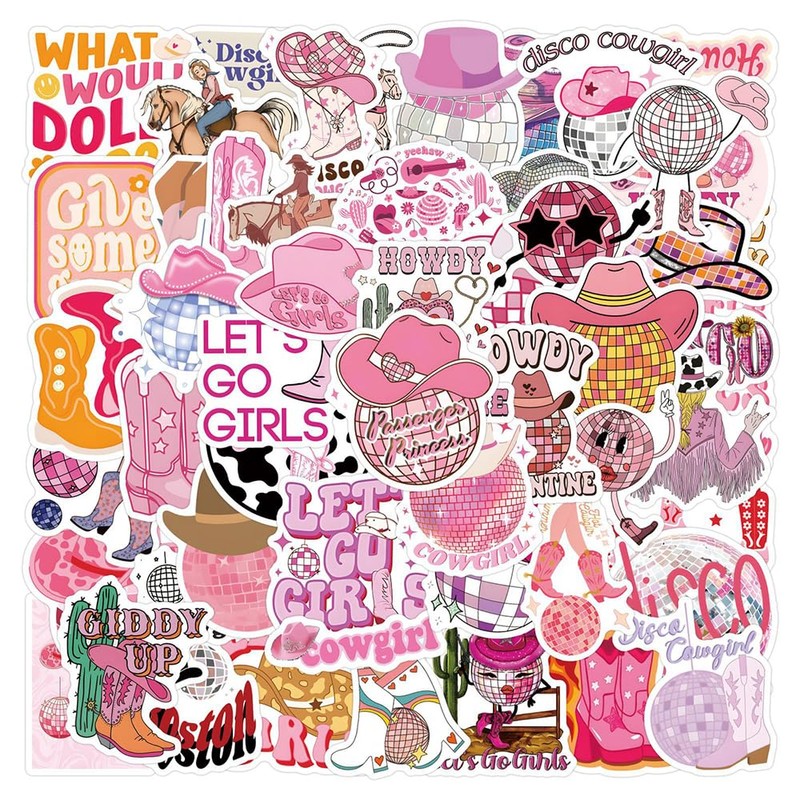 Package included:55-Pack Pink Disco Cowgirl Stickers