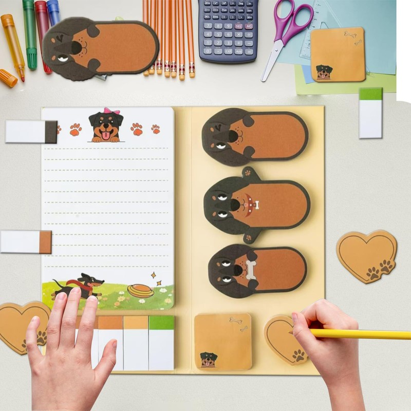 550 Sheets Cute Sticky Notes Set, 11 Designs Note Pads, Adorable Cartoon Writing Memo Pads with Fancy Divider Tabs for Kids Students School Office Supplies (Dachshund)