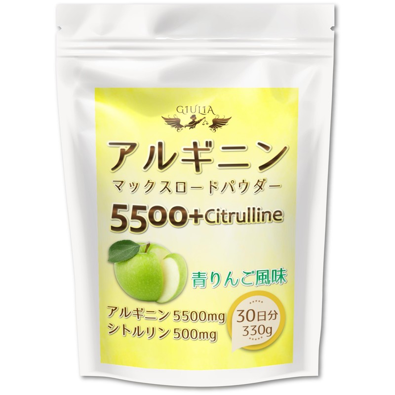ジュリア フルーツ風味の アルギニン 5500mg+500mg マックスロード パウダー (330グラム (x 1), 青りんご)