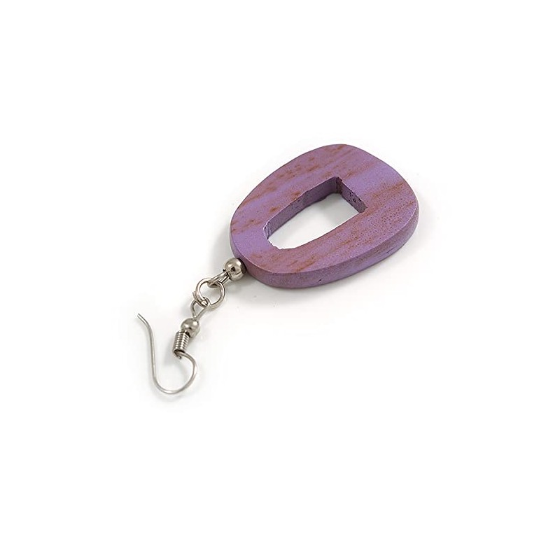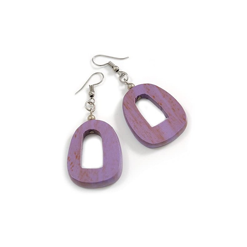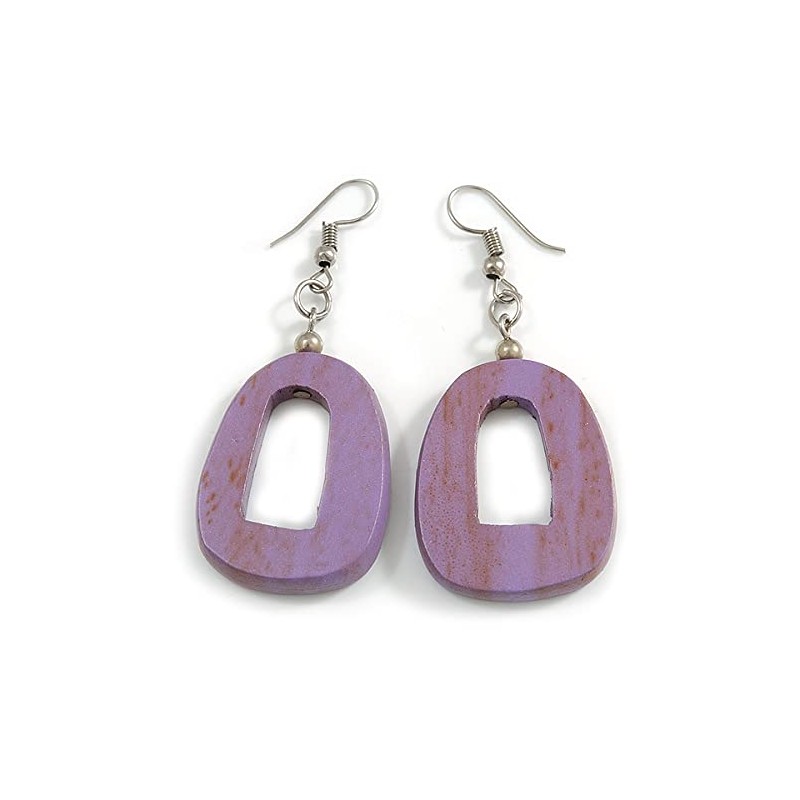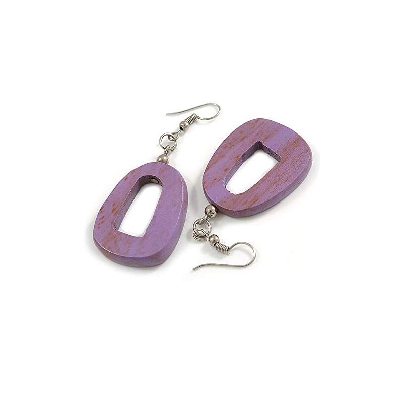 55mm Long/Antique Lilac Purple Painted Wood O-Shape Drop Earrings