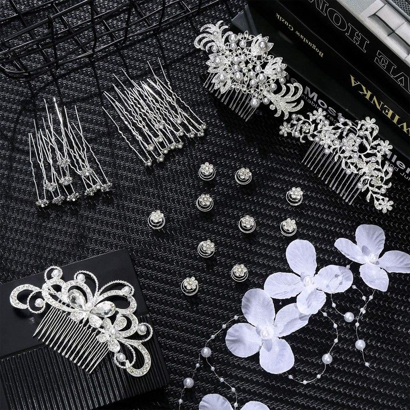 - Lo que obtienes: recibirás 56 piezas de accesorios para el cabello de boda nupcial en total, incluidas 3 piezas de peinetas para el cabello de boda, 20 piezas de pinzas para el cabello en forma de U, 20 piezas de pinzas para el cabello de cristal de flor de imitación, 12 piezas de pasadores en espiral para el cabello y 1 banda para el cabello con flores de imitación, suficiente para tus accesorios para el cabello