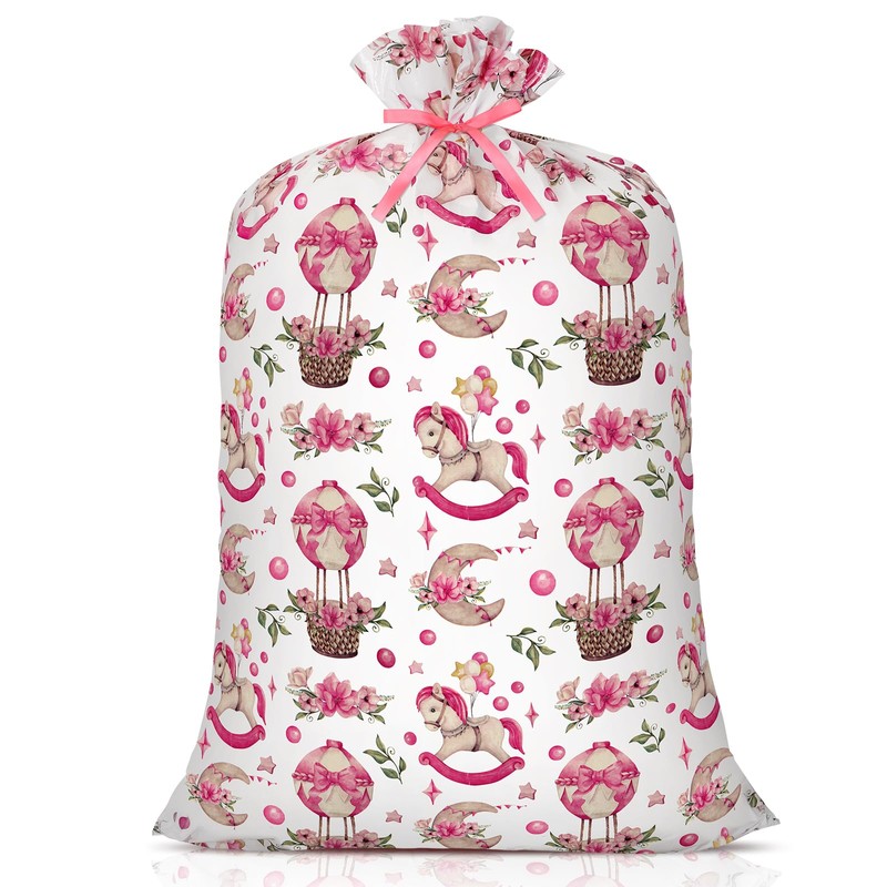 56" Extra Large Gift Bag for Girl Birthday Jumbo Bag, Pink Trojan Horse Birthday Gift Bags, Plastic Gift Bags for Presents, Baby Shower, Party Oversized Huge Wrap Wrapping Gift