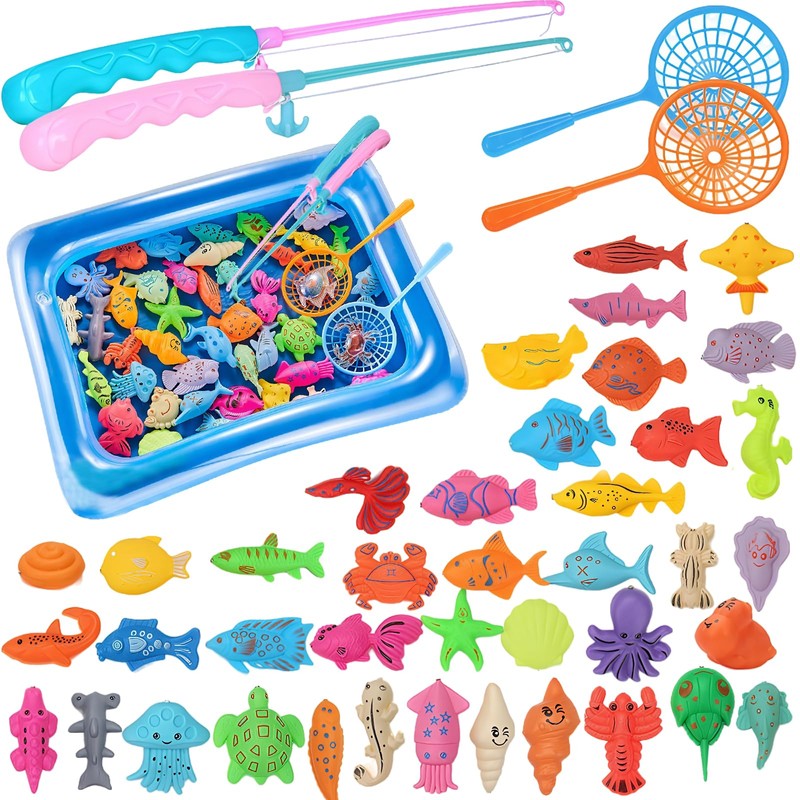 56 Pieces of Magnetic Fishing Game, Fish Game for Kids, 50 Three-Dimensional,...