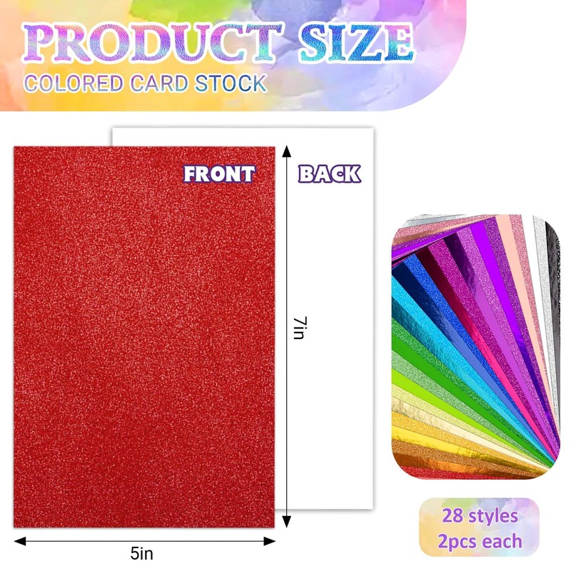 56 Sheets 28 Colors Metallic Glitter Cardstock, 5x7in 250gsm/92lb Foil Mirror Shimmering Paper for Arts Crafts, Scrapbooking, Card Making, DIY Projects