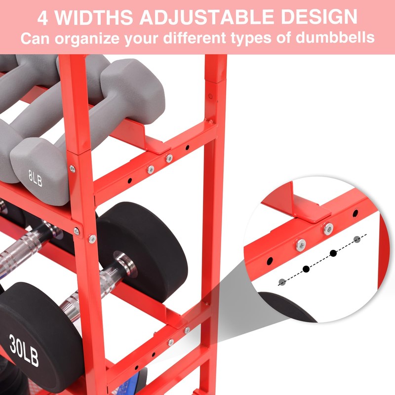 - Sturdy&Durable and Mobile: The workout storage organizer is made of high-quality metal, and the sturdy construction and rust-resistant powder-coated finish allow the weight rack for dumbbells to hold up to 350 pounds and last for years. Our dumbbell weight rack stand comes with 4 durable multi-directional wheels (2 lockable). Easy to move anywhere and lock into place, ideal for home gyms, yoga studios, health clubs, garages, basements and outdoor sports