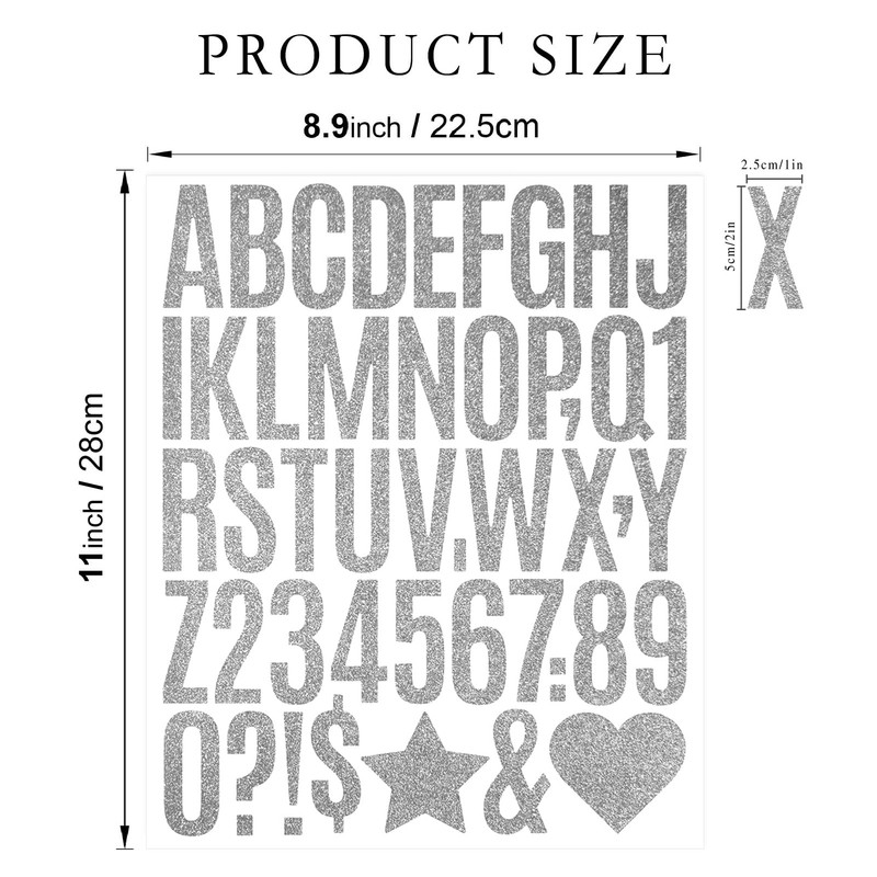 - Glitter Design:Glitter letter stickers are designed with various styles: capital letter, lowercase letter, numbers, stars, signs, hearts, etc. The sparkling colors will attract people's attention.You can choose and match to create meaningful sign or words as you desire